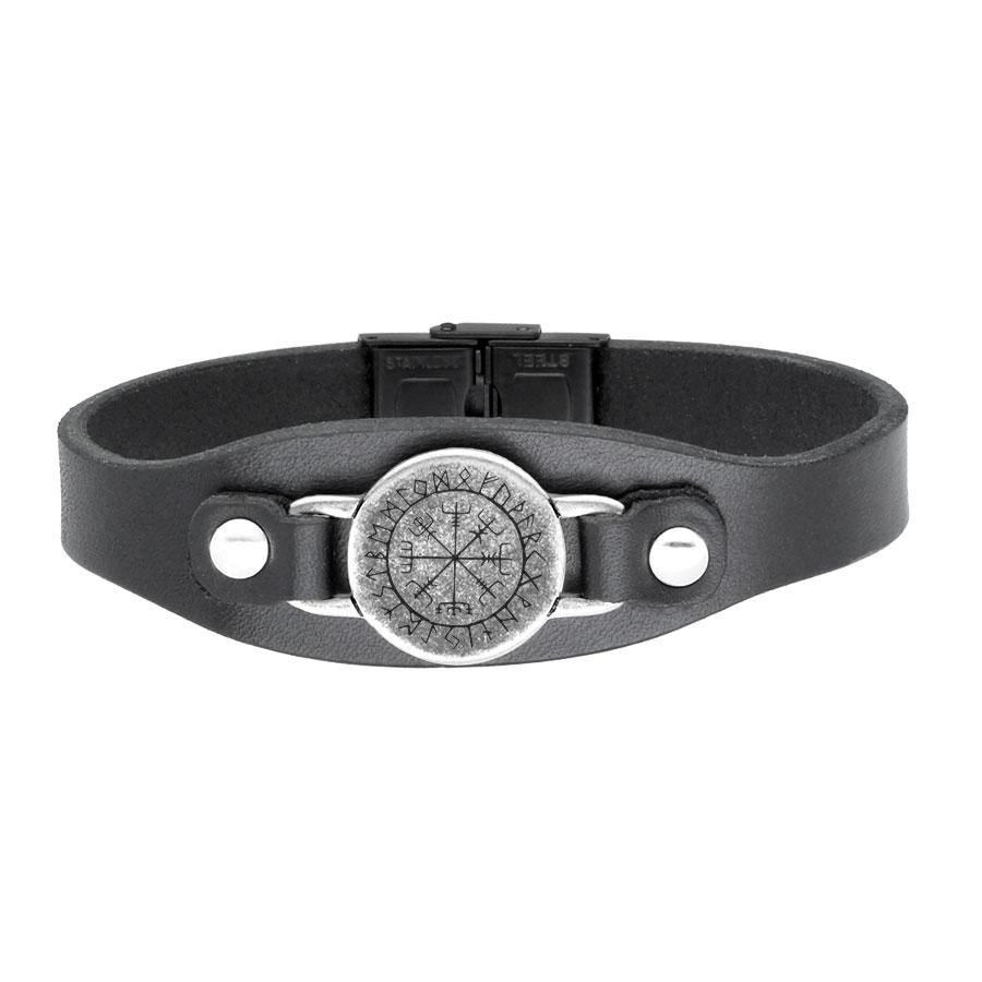 Niezwykle ciekawą bransoletą nordycką jest model męski z symbolem Vegvísir. Gruba bransoleta wykonana z najwyższej jakości skóry, została ozdobiona symbolem Vegvísir, który wykonano ze stali szlachetnej w szarym kolorze. Żeby jeszcze bardziej upodobnić model do biżuterii nordyckiej, zastosowano przecierania w stylu vintage. Vegvísir to nordycki kompas, który miał chronić wojowników przed zagubieniem, a także pomagać im odnaleźć właściwą drogę, niezależnie od burzy. Jest to doskonały dodatek dla stylizacji każdego mężczyzny, który uwielbia kroczyć własną ścieżką. Dodatkowo model to nie tylko przepiękna ozdoba, ale także symbol mówiący o tym, że niezależnie od okoliczności, zawsze można obrać właściwy kierunek w swoim życiu.
