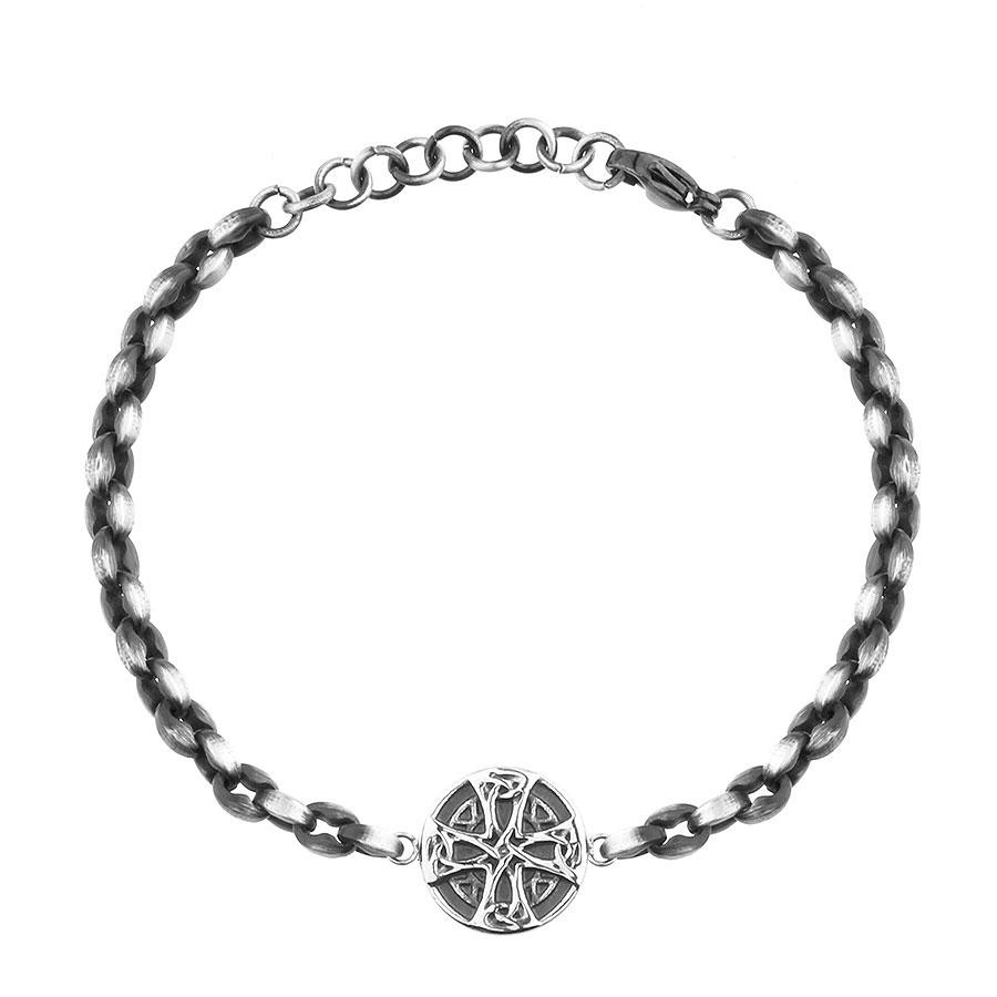 Jeśli chcemy wybrać dla siebie lub swoich bliskich atrakcyjną, nordycką bransoletkę, warto postawić na srebrny, łańcuchowy model z krzyżem celtyckim. Bransoletka wykonana została ze stali nierdzewnej, dzięki czemu może być noszona także przez osoby ze skórą skłonną do podrażnień. Srebro bransoletki zostało uzupełnione szarą, antyczną powłoką, z modnymi przecieraniami. Dzięki temu nawiązują do dawnej kultury Wikingów. Co więcej, medalion zdobiony wzorem celtyckiego krzyża symbolizuje równowagę, ochronę i duchową siłę. Uniwersalny, ponadczasowy wygląd bransoletki sprawia, że może ona stać się dekoracją dla ubioru casualowego, jak również tworzonego na inne, specjalne okazje. Bransoletka może stać się unikalnym, niepowtarzalnym podarunkiem. Tylna część medalionu jest gładka. Stanowi idealne miejsce na wykonanie grawera. Na biżuterię można nanieść imię, ważną datę, ulubiony cytat czy grafikę. Wszystko zależy tylko od indywidualnych preferencji.