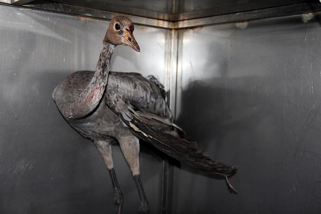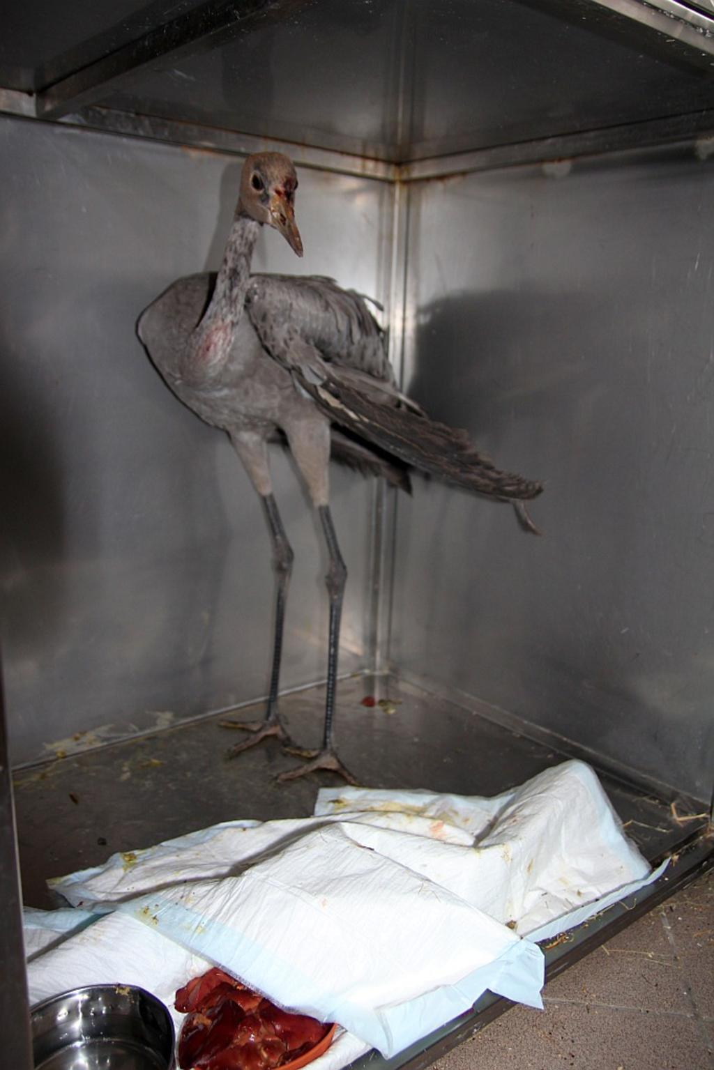 Żuraw z uszkodzonym skrzydłem trafił do lecznicy weterynaryjnej Danuty Pawłowskiej. Mimo kontuzji ptak postanowił „zrezygnować” z leczenia i uciec. Na szczęście został złapany i poddany operacji.