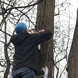 Dobra robota. Sam powiesiłem kilka domków ( z odzysku po alkoholach) Ale do wieszanie nie używałem kkkkkasku ani krawata. Jak widać na zdjęciu. Jeden kask jeden pracownik i jeden szef który do przybicia jednego karmnika pożyczył kask od pracownika. BHP najważniejsze. Kask nie chroni głowy pracownika tylko du.pę kierownika.