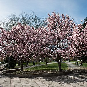 Wiosna nas nie rozpieszcza w tym roku, rozpieszcza natomiast nasze zmysły widok kwitnących magnolii. Te na skwerze Orląt Lwowskich niczym potężny kwiatowy baldachim rozpostarty nad wejściem do parku przyprawiają swym widokiem o zawrót głowy.