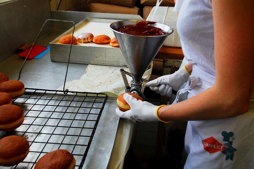 - Po upieczeniu nadziewamy je i oblewamy lukrem, bądź posypujemy cukrem pudrem, także na życzenie klientów. Mamy dwa rodzaje nadzienia, pączki z różą i adwokatem. Te z adwokatem pieczemy już kolejny raz również na prośbę klientów, ponieważ według nich są tak smaczne, że nie wyobrażają sobie tego dnia bez ulubionego przysmaku.