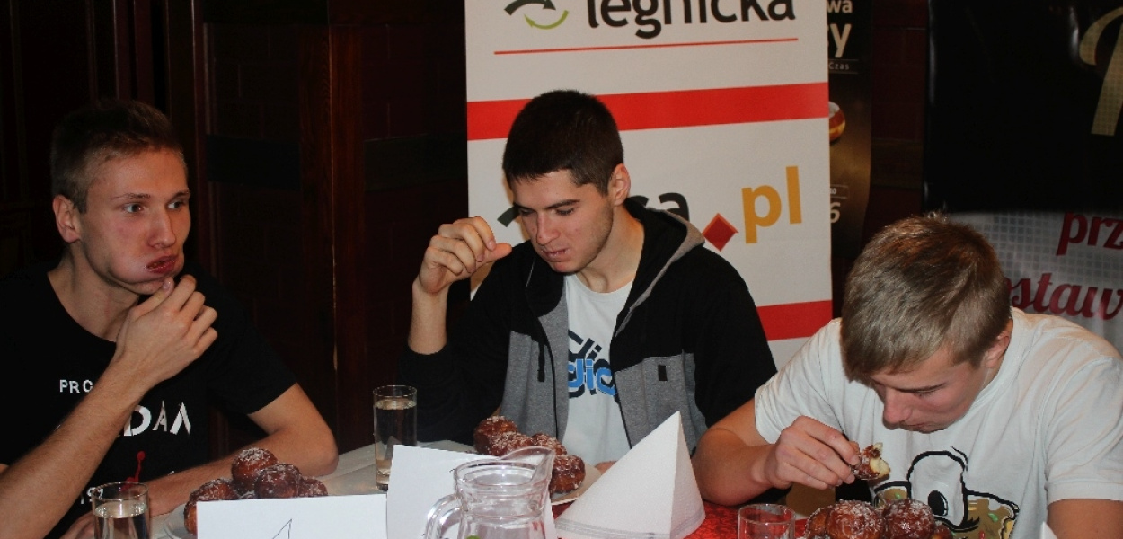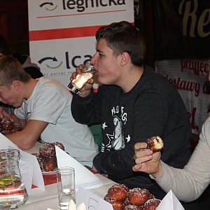 Krystian Osmański z Legnicy został tegorocznym mistrzem w jedzeniu pączków na czas. Tegoroczny zwycięzca potrzebował 4,5 minuty by spałaszować dziesięć słodkich bomb kalorycznych.