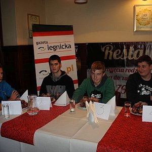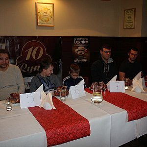 Stanęło do nich jak zawsze dziesięciu zawodników. Był wśród nich Wojciech Frączek, ubiegłoroczny mistrz. Niestety, nie udało mu się utrzymać tytułu. Ten zgarnął piętnastoletni Krystian Osmański, który zjadł swoją dziesiątkę w czasie 4,32 min. drugie miejsce zajął Jarosław Hubacz. Jarek zjadł swoją porcję pączków w czasie 4,48 min. Na trzecim miejscu z czasem 5,33 min. znalazł się ubiegłoroczny mistrz Wojciech Frączek.