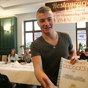 Ubiegłoroczny mistrz Legnicy w jedzeniu pączków na czas, nie pozwolił odebrać sobie tytułu i po raz drugi triumfował w naszej zabawie. Zjadł dziesięć pączków w najkrótszym czasie.