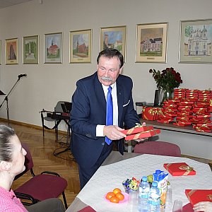 Już po raz czwarty przygotowali dla nich miłą niespodziankę. Obdarowali szkarłatnymi różami i czekoladkami. Nie szczędzili też uśmiechów i komplementów. Życzenia w imieniu męskiej części pracowników starostwa złożył paniom Kazimierz Burtny, członek zarządu powiatu, który życzył zdrowia, radości i spełnienia marzeń. Do życzeń dołączył się Aleksander Kostuń, przewodniczący rady powiatu życząc miłości, zaufania i odrobiny tęsknoty.