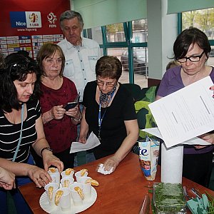 Uczestnicy warsztatów pracowali w czterech grupach i różne rodzaje śniadań przygotowywali według wskazówek dietetyczki i pod czujnym okiem szefowej stowarzyszenia. Były zestawy dla osób aktywnych, dla osób, które powinny unikać glutenu i mleka.