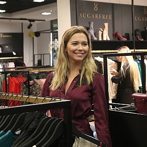 Sandra Kubicka, znana modelka, twarz marki Sugarfree doradzała klientkom przy wyborze idealnej kreacji na Boże Narodzenie oraz Sylwestra. Modelka przyjechała do Legnicy specjalnie na otwarcie sklepu marki Sugarfree.