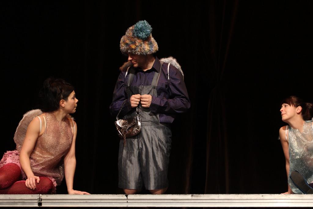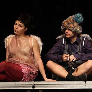 Cieplak, stosując metaforę świata jako teatru i wplatając do swojego spektaklu pochodzący z „Traktatu teologicznego” wiersz Czesława Miłosza „Tak naprawdę”, jeszcze mocniej daje odczuć, jak niewiele wiemy o celu i sensie naszej ziemskiej wędrówki. W przedstawieniu ucieleśnieniem nieskończoności są anioły (Zuza Motorniuk, Magda Skiba, Mateusz Krzyk). To byty zupełnie niepojęte, które wyglądają niczym egzotyczne ptaki, wszystkiemu się dziwią jak dzieci i mówią niezrozumiałym językiem, będącym mieszanką portugalskiego i „ptasiego”. Kroczą jednak wiernie wraz z bohaterami stąd do wieczności.