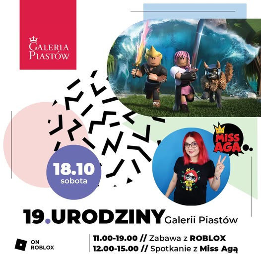 Galeria Piastów w Legnicy obchodzi swoje 19. urodziny. W sobotę, 18 października, centrum handlowe zamieni się w miejsce pełne energii, zabawy i kreatywności. Tegoroczne świętowanie poświęcone będzie jednej z najpopularniejszych gier na świecie – Roblox – oraz spotkaniu z Miss Agą, znaną youtuberką i kolekcjonerką zabawek.