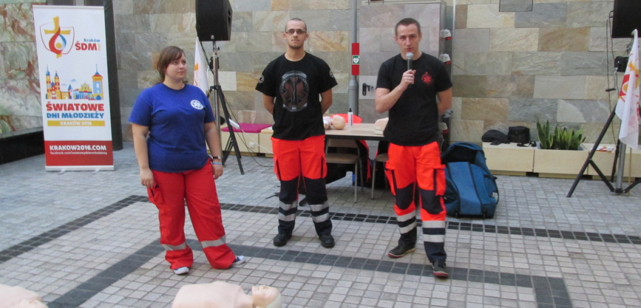 Z okazji zbliżających się Światowych Dni Młodzieży organizatorzy zaprosili wszystkich chętnych na pokaz pierwszej pomocy, który odbył się na patio Galerii Piastów.