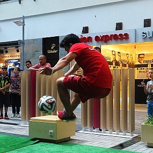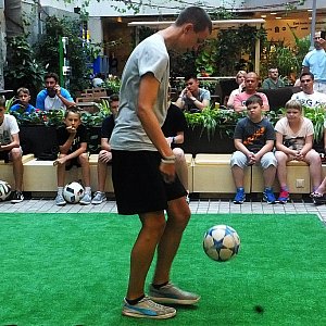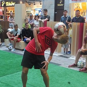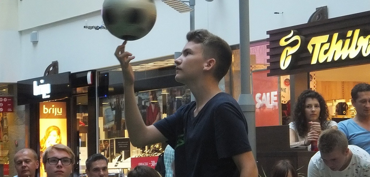 Jednym z uczestników zabawy jest czternastoletni Alan Wolnicki z Legnicy. W żonglowanie piłką bawi się już od ponad roku.