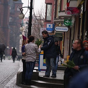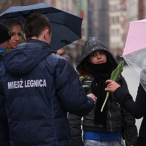 Podobnie jak w roku ubiegłym piłkarze Miedzi Legnica, 8 marca pamiętali o paniach. Podopieczni trenera Bogusława Baniaka pojawili się w Rynku z bukietami tulipanów.