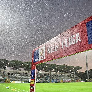 Dwukrotnie bliski szczęścia był Rafał Augustyniak, ale najpierw nie trafił w piłkę, a potem z kilku metrów uderzył głową prosto w bramkarza. Goście dali się Miedzi wyszumieć i tuż przed przerwą wyprowadzili akcję, która dała im prowadzenie. Drzemkę legnickiej defensywy wykorzystał Filip Jazvić, finalizując głową precyzyjne dośrodkowanie Kaczmarka.