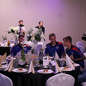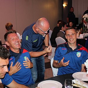 Uroczysty obiad na cześć piłkarzy, sztabu szkoleniowego oraz pracowników legnickiej Miedzi wydał w poniedziałkowe popołudnie w hotelu Sękowski prezydent Tadeusz Krzakowski.