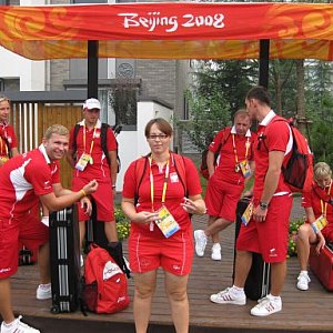 Po zakończonym treningu szybko wróciliśmy do wioski ponieważ o godzinie 18 mieliśmy ważną uroczystość - podniesienie flagi narodowej w wiosce i przywitanie polskiej reprezentacji przez mera wioski. Uroczystość ta polegała na odśpiewaniu hymnu narodowego i podniesieniu biało - czerwonej flagi na maszt. Później wymiana upominków między merem wioski a sekretarzem generalnym Polskiego Komitetu Olimpijskiego i pamiątkowe zdjęcia. Na koniec dnia mieliśmy jeszcze odprawę z trenerami i omówienie planu zajęć na następny dzień – relacjonuje czwartek w Pekinie, łucznik Strzelca Legnica.