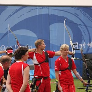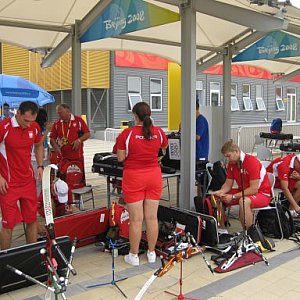 - Czwartek rozpoczął się od porannego rozruchu i ćwiczeń rozciągających, później szybki prysznic i na śniadanie do stołówki. Mieliśmy pierwszy dzień treningów na torach łuczniczych. Do południa strzelaliśmy lekki trening na torach bocznych (około stu strzał z 10 i 70 metrów) Później powrót do wioski i obiad. O godzinie 14 stawiliśmy się znów na torach łuczniczych na drugi trening. Między godzinami 15 a 16 mieliśmy wyznaczony czas do treningu na torach głównych, na których będą rozgrywane wszystkie pojedynki indywidualne i drużynowe. To była jedyna okazja przed pojedynkami aby postrzelać na tych stanowiskach, sprawdzić celowniki, poobserwować wiatr i oswoić się w widokiem ogromnych trybun. Trening przebiegał bez większych problemów. Po prawie dwóch tygodniach aklimatyzacji do czasu, temperatury i wilgotności wszystko jest normalnie.