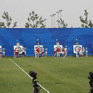 - Sobota była dniem dniem kwalifikacji. Pierwsze strzały na Igrzyskach oddały panie. Ich strzelania zaczęły sie o godzinie 11. My dzień zaczęliśmy tradycyjnie od rozruchu. Jedynym, miłym plusem było to że rozruch rozpoczął się o 8.30 a nie jak ostatnimi dniami o 7 (czytaj - więcej czasu na spanie). Później szybka toaleta i wyjście na śniadanie. Mimo naprawdę dużego wyboru na stołówce zdołałem wcisnąć tylko płatki. Do godziny 12.30 mieliśmy czas wolny. Poświęciłem go na odebranie prania z pralni, odpoczynek i sesje relaksacyjną. Ogólnie nic zabierającego siły. O 12.30 wyszliśmy całą drużyną, już spakowani z łukami na obiad. Zjadłem troszkę ryżu z warzywami i kanapkę z tuńczykiem. O 13 mieliśmy już busa na tory łucznicze. Gdyby nie ciężkie walizki z łukami można by dojść tam szybciej niż autobus jedzie, ale mamy zawody i wszelkie większe spacery są wstrzymane. Po dojeździe na tory dziewczyny jeszcze miały ostatnie trzy serie do odstrzelenia. Oczywiście kibicowaliśmy im. W takich wypadkach każdy doping jest wskazany bo liczy się każdy punkt.