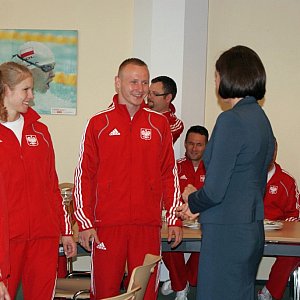 Marzanna Pawlik, Maciej Żuk, Wioletta Miśkiewicz, Gabriela Forgiel, Karol Forgiel i Łukasz Stawarz byli gośćmi minister sportu i turystyki Joanny Muchy.