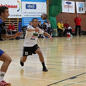 Zwycięstwo Miedzi nie było zagrożone ani przez chwilę. Pierwszą bramkę w tym sezonie zdobył Adam Skrabania (1:0 w 2 min.). W 8 min. było już 8:3 dla legniczan i kibice mieli podstawy by przewidywać pogrom przeciętnego jak się okazało rywala ze Śląska. W 15 min. było 10:5, ale pięć minut później już tylko 11:9. Przed przerwą gospodarze znów wzięli się do roboty i na odpoczynek do szatni schodzili prowadząc 16:12.