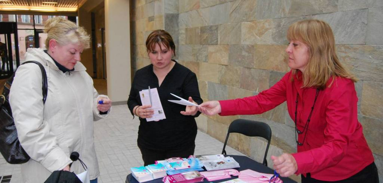 Pracownice Powiatowej Stacji Sanitarno – Epidemiologicznej w Legnicy i Wolontariuszki ze Stowarzyszenia Europa Donna rozmawiały z legniczankami o profilaktyce przeciw nowotworom.