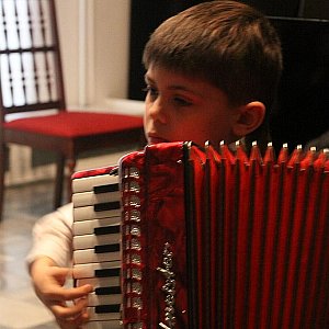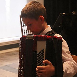 Koncert z cyklu „Czwartek Muzyczny” w wykonaniu najmłodszych uczniów klas fortepianu i akordeonu Zespołu Szkół Muzycznych w Legnicy.