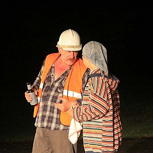 "Pielgrzymowanie teatralne od drzewa do drzewa" sceny polnej Fundacji Kresy 2000 w inscenizacji plenerowej Stefana Szmidta – „Drzewo” Wiesława Myśliwskiego.