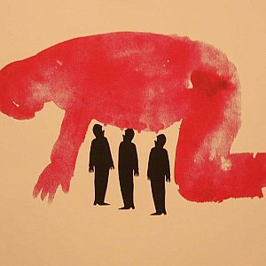 Praca Sebastiana Kubicy jest rzeczywiście bardzo ciekawa. Przedstawia postać człowieka, który jest na czworakach i ma pod brzuchem nabrzmiałe sutki - jak np. karmiąca szczenięta suczka. Do tych „poidełek” przystawiają się panowie w garniturach. Biorąc pod uwagę, jak wygląda w dzisiejszych czasach polityka, rysunek jest naprawdę trafiony. Praca jest bardzo skromna graficznie. Ludzie są tylko zarysami, nie ma tam drobiazgów, szczegółów. To prosty, ale bardzo wyrazisty w treści rysunek.