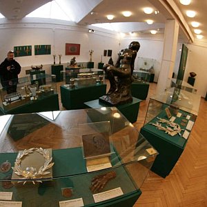 - Wystawę podzieliliśmy na trzy części – mówi Łucja Wojtasik – Seredyszyn, komisarz wystawy. – Pierwszą część stanowi dokumentacja fotograficzne przedstawiająca założycieli i kontynuatorów pracy braci Łopińskich. Mamy tu też pomnik Mickiewicza, Słowackiego, brązowy odlew ręki Chopina i srebrny wieniec laurowy, wręczany, jako nagroda w Konkursie Chopinowskim. Są też medale poświęcone wielkim Polakom. W drugiej części znalazły się przybory na stół, na biurka, naczynia dekoracyjne. Trzecia część poświęcona została dyplomom, które ta rodzina przez wiele lat otrzymywała na różnego rodzaju międzynarodowych wystawach. Na koniec przygotowaliśmy pewien rodzaj albumu, którym znalazły się wyroby do dzisiaj produkowane i sprzedawane.