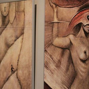 - Moje prace często powstają pod wpływem impulsu, dla mnie jednym z takich ulubionych impulsów jest muzyka – mówi Sławek Gruca. – Szczególnie na przykład piosenki śpiewanej w językach, których nie rozumiem. Nie wiedząc, o czym są piosenki wyobrażam sobie, o czym są. Same się w malują w mojej głowie jakieś tam obrazy, które ja staram się później przełożyć na pastele.