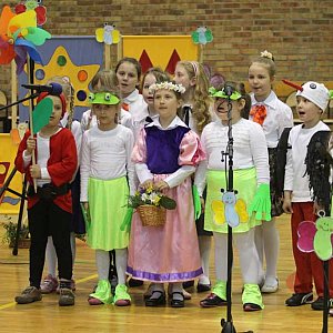 Piękne, kolorowe stroje wprowadziły wesoły wiosenny nastrój, a popisy maluchów wzbudziły niekłamany zachwyt publiczności, która licznie zasiadła na widowni.