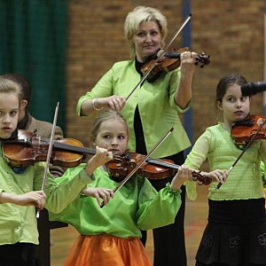 Na początek wystąpiła Szkolna Orkiestra Dziecięca pod dyrekcją Aleksandra Piechaczka, która wykonała dwa bardzo znane utwory. Były to „Rzeka marzeń” i ” Dumka”.