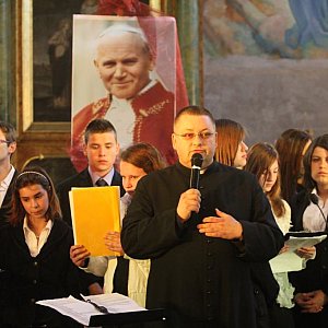 - Zagramy dzisiaj wszystkie znane utwory związane z osobą Jana Pawła II – powiedział Piotr Koziar. – Będą to min. „Moje miasto Wadowice”, Abba Ojcze”, Pan kiedyś stanął nad brzegiem” „Barkę”. Na pewno nie zabraknie utworów komponowanych specjalnie na okoliczność przyjazdów naszego papieża do ojczyzny. Będzie to utwór „Nowa rewolucja”, kompozycja Wacława Janiszewskiego, który dowodził, można powiedzieć grupą tysiąca muzyków we Wrocławiu, kiedy w 1983r. papież gościł na Partynicach. Oprócz tego będzie wiele utworów religijnych i świeckich, które, mam nadzieję będą pasowały do całej uroczystości.