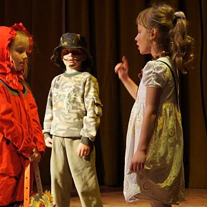 -Uczniowie klasy ”O” SP 1w przedstawieniu o Czerwonym Kapturku