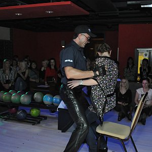 Striptizer rozbierał się na torze bowlingowym. Za każdym razem odważnym paniom, które decydowały się towarzyszyć mu na scenie, wręczał w dowód wdzięczności lizaka. Przed legniczankami odkrył pośladki, na jednym z nich miał wytatuowanego króliczka Playboya.