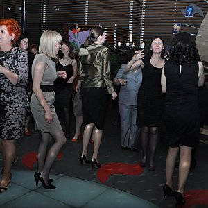 Panie pląsały po parkiecie ze specjalnie przygotowanymi śpiewnikami, w których znalazły specjalnie na tę okazję przygotowane do znanych wszystkim utworów muzycznych teksty. Wszystkie miały związek z ich pracą.