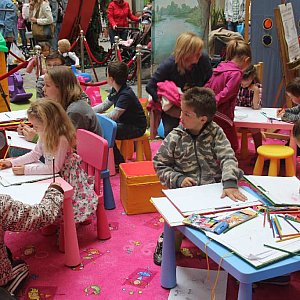 W tym samym czasie w galerii handlowej, dzieci bawiły się także z bohaterami Stumilowego Lasu. Karykaturzyści starali się za wszelką cenę skupić uwagę uczestników warsztatów na rysunkach, ale nie zawsze to się udawało. Jak trafnie podsumował Jacek Frankowski: „nie ma szans na wygranie z Kubusiem Puchatkiem”.