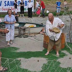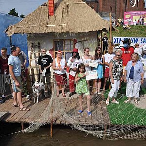 W imprezie, zorganizowanej po raz czternasty wzięło udział 17 załóg, które pokonały milę morską, od Mostu Bielańskiego do portu przy Moście na ul. Wrocławskiej. Rokrocznie organizatorzy wymyślają inny temat spływu. Tym razem, uczestnicy musieli powrócić do lat dziecięcych i stworzyć bajkową samoróbkę. Żeby dodać otuchy bohaterom, dyrektor OSiR-u czytał zebranym bajkę Puszkina pt. „O rybaku i złotej rybce”. Nad wodą, z pomocą plastyka Grzegorza Fijałkowskiego i stolarza Andrzeja Pydy powstała piękna chatka rybacka... w której zamieszkali rybak z żoną. W rolę rybaka wcielił się Witold Grzelak, a jego wybranką została Jolanta Grędowska, która dawała mu nieźle w kość. [FOTORELACJA]4913[/FOTORELACJA][FOTORELACJA]4914[/FOTORELACJA]