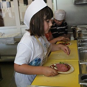 Zwiedzanie hotelu zakończyło się spożyciem samodzielnie skomponowanej pizzy. - Ja dzisiaj pierwszy raz robiłem pizzę i bardzo mi się podobało – chwali się Dominik. – Położyłem na nią wszystko oprócz pieczarek i zielonych oliwek, bo ich nie lubię.