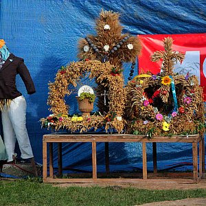 Jarmark został połączony z imprezą dożynkową. Odbyła się prezentacja „obrzędu chleba”. Wybrano najpiękniejszy wieniec i najsmaczniejszą potrawę regionalną. Przeprowadzony został turniej sołectw Gminy Legnickie Pole o Złoty Laur Świętego Bartłomieja. Nie zabrakło też wzbudzającej najwięcej emocji, sztandarowej konkurencji – rzutu broną. Wzięło w niej udział aż 30 uczestników, w tym kilka pań. Niestety nikomu nie udało się pobić ubiegłego rocznego rekordu, który wynosi ponad 30 metrów. Zwycięzca rzucił broną na odległość 13 metrów 20 cm.
