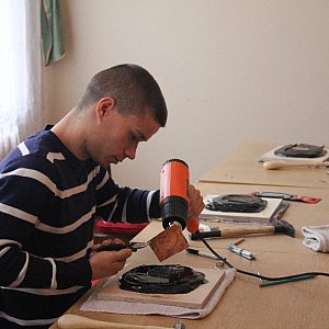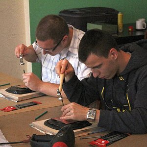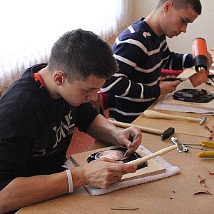 W ten sposób powstaje wklęsły rysunek, który jest wypukły na drugiej stronie blachy. Pomysłodawca warsztatów zaznacza, że już po dwóch dniach, młodzi ludzie potrafią wykonać dobrą pracę, za którą bez problemu dostaliby „szkolną piątkę z minusem”. W zajęciach w Cechu Rzemiosł Różnych bierze udział dziesięciu uczniów Technikum Mechanicznego w Legnicy. [FOTORELACJA]5437[/FOTORELACJA][FOTORELACJA]5436[/FOTORELACJA]
