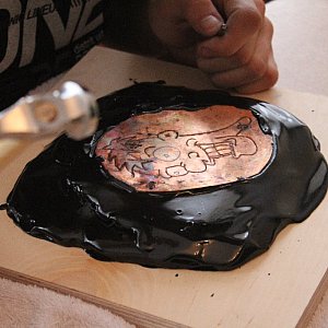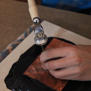 Szukając przejawów Legnickiej Jesieni Miedzianej, wybraliśmy się na początku do Cechu Rzemiosł Różnych. - Wskrzeszamy tu stare techniki złotnicze – wyjaśnia Jacek Doliński, prowadzący warsztaty repuserskie. - Zajęcia polegają na ręcznym tłoczeniu blachy metali kowalnych na specjalnym podłożu, najczęściej jest to smoła repuserska. Uczestnicy za pomocą pobijaków pobijają blachę odpowiednim młoteczkiem.