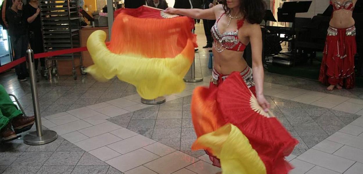 Karnawał i walentynki kojarzą się z pięknem i energią. Oprócz wokalistów i muzyków, wnętrze Galerii opanowały egzotyczne, barwnie ubrane tancerki z grupy Everest. Ich obecność to nie lada wyzwanie zwłaszcza dla panów, którzy wzrokiem podążali za wirującym ciałem fascynujących kobiet. Z kolei oryginalne, kolorowe suknie wzbudziły zainteresowanie pań.