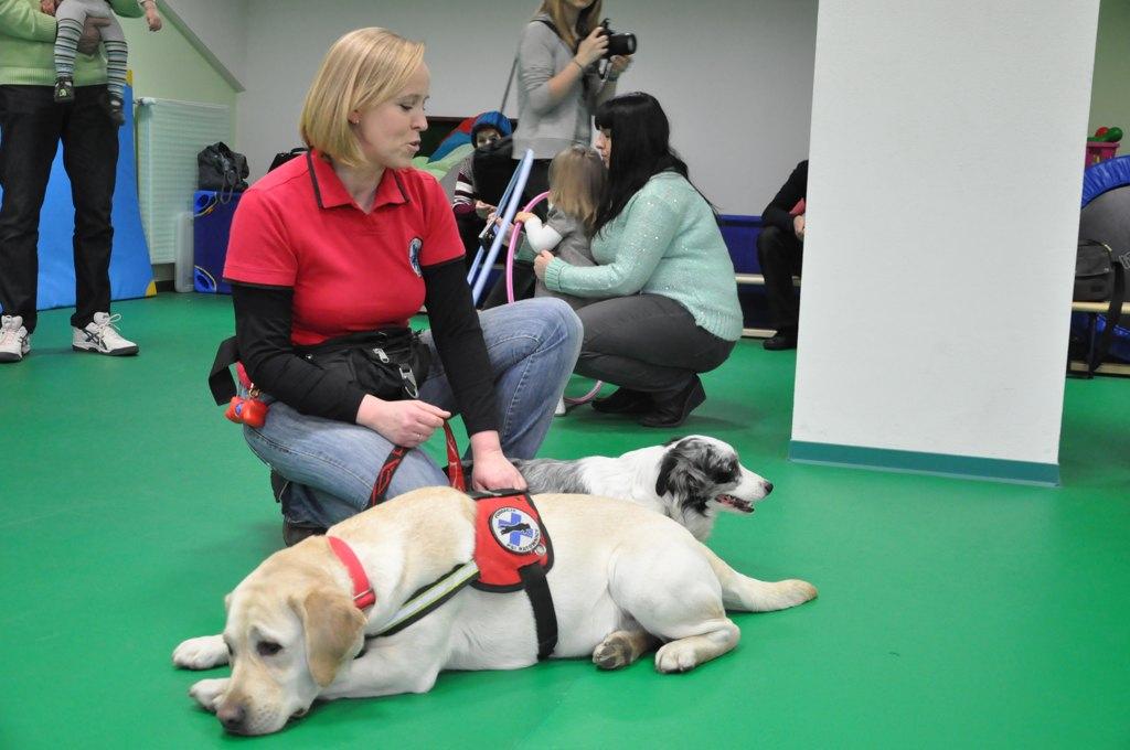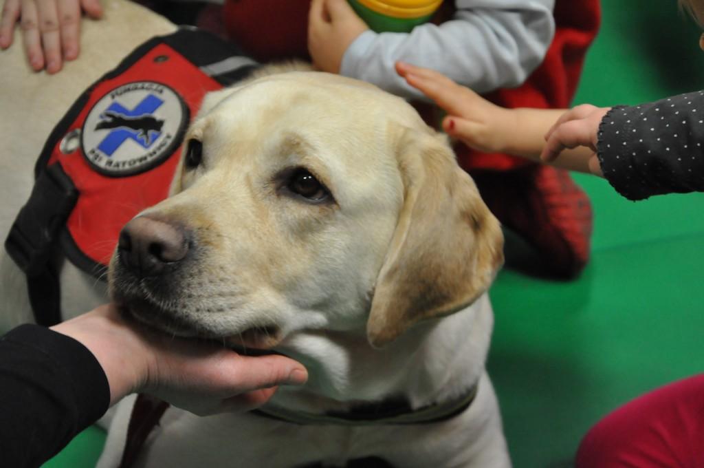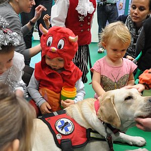 Nie zabrakło także wyjątkowej niespodzianki dla najmłodszych. Po godzinnej zabawie, w drzwiach wejściowych stanęły psie ratowniczki ze swoimi dwoma pupilami. Czworonogi spokojnie zareagowały na tłum dzieci, kładły się na podłodze i oczekiwały intensywnych pieszczot. Z początku maluchy z dystansem zbliżały się do zwierzaków, ale przekonane o ich dobrych zamiarach przytulały się do psów, a te z kolei w ramach wdzięczności obdarowywały młodych legniczan "psimi całusami". Psy zaprezentowały także swoje umiejętności, bieganie za ringiem czy slalom między nogami właścicielek.