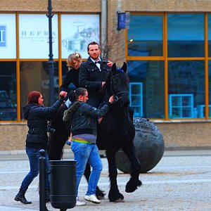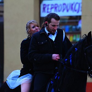 Nie było tradycyjnej limuzyny, motocykli czy nawet rowerów. Środkiem transportu dla nowożeńców był… czarny rumak, na którym pan młody przywiózł swoją wybrankę do Pałacu Ślubów. - Kaśka! Żenimy się! – oświadczył zdecydowanie pan młody. I tak się stało. W obecności świadków, rodziny, szerokiego grona przyjaciół i członków Teatru Avatar odbyła się ceremonia zaślubin Katarzyny Spychaj i Piotra Pawarskiego.[FOTORELACJA]5832[/FOTORELACJA]