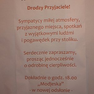 Głomb podsumowując zaznaczył, że otwierają Caffe Modjeska już na zawsze i o jeden dzień dłużej. W trakcie uroczystego otwarcia, goście wysłuchali koncertu w wykonaniu Małgosi Mańkowskiej i Barbary Figaj.