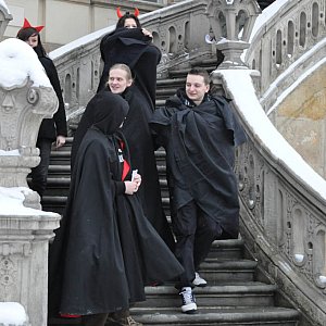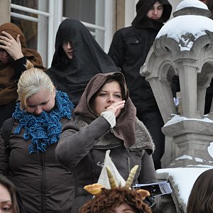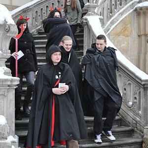 Happening wzbudził zainteresowanie przechodniów, bo młodzi ludzie wcielili się w role diabłów i zakonników.