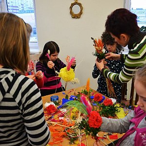 W Spółdzielczym Domu Kultury "Kopernik" zrobiło się wiosennie. Na konkursowych warsztatach wykonywania palm wielkanocnych nie zabrakło chętnych.