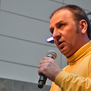 Wszyscy czekali na gwiazdę wieczoru - Grzegorza Halamę. Artysta przyznał, że czasem zdarza mu się przeżywać irracjonalny stres przed występem. - Trzęsą mi się wtedy nogi i sam do siebie mówię: Co jest na Boga?! - z uśmiechem mówi Halama. - Ze stresem nie ma jednak co przesadzać, 26 lat występuję już na scenie. Na pewno jest trudniej jak "rozśmieszam" publiczność w pojedynkę, bez kolegi, wtedy muszę odpowiednio dopasować ramówkę.
