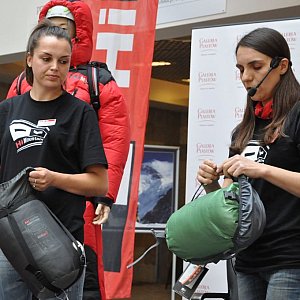 Zanim jednak Hajzer wyszedł do zgromadzonej w patio galerii publiczności, pracownicy sklepów sportowych usytuowanych w centrum, opowiadali o sprzęcie, w który koniecznie trzeba się wyposażyć wyruszając w góry. Legniczanie dowiedzieli się o różnych modelach śpiworów, poznając różnice między nimi. Prowadzący wiele uwagi poświęcili ubraniu się w góry, od stóp do głów. Okazuje się, że każdy, nawet najmniejszy element stroju, w górach ma ogromne znaczenie. W kurtki, buty, spodnie, śpiwory, namioty możemy się wyposażyć odwiedzając sklepy sportowe w Galerii Piastów. Już teraz warto zajrzeć do HiMountain, Martes Sport i Outdoor Point, bo zagościły tam duże promocje.